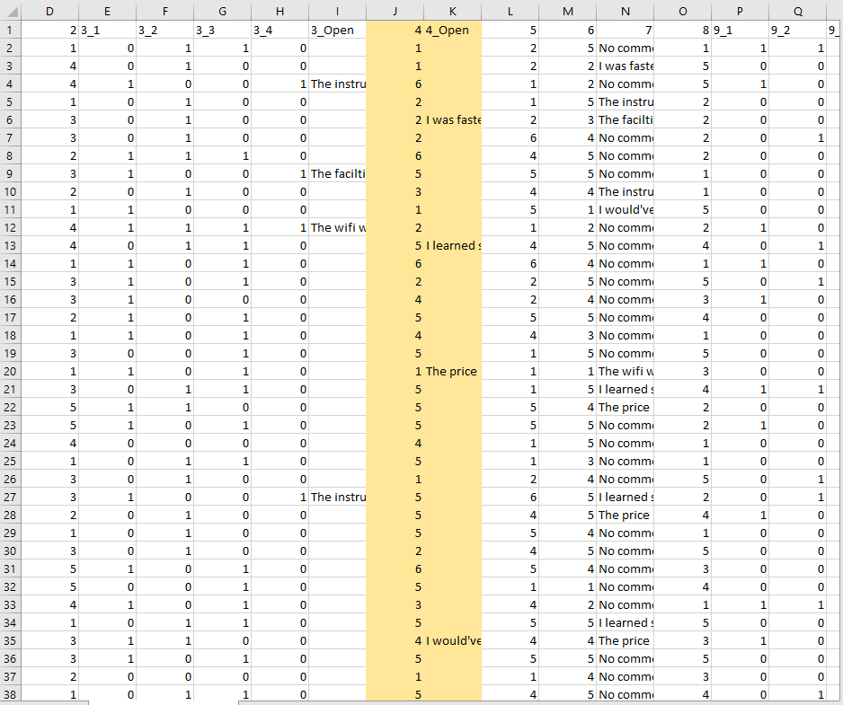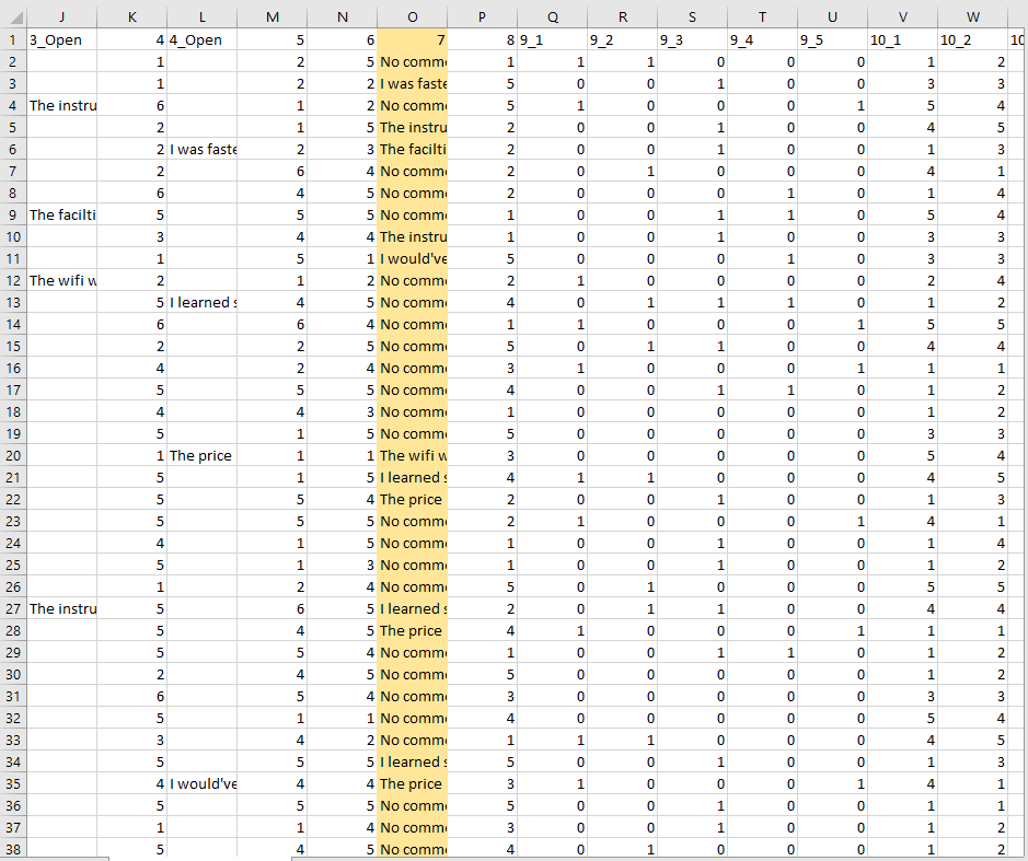 - If the question allows a text entry for the final option, you need to add an extra column for the open answers.